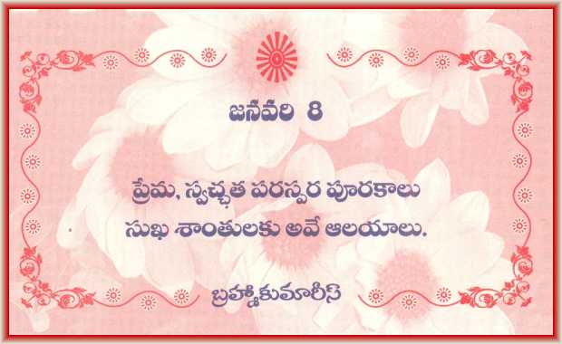 Telugu Murli - 08.01.26 01. Telugu Murli - Htm 02. Telugu Murli - Pdf 03. Telugu Murli - MP3 04. Telugu Murli - Ess-MP3 07. Telugu - Vardan - JPG 14. Telugu - Slogan - JPG 14. Telugu Aaj Ka Purusharth 14. Today Calendar Old Date - 07.01.26 Back Top