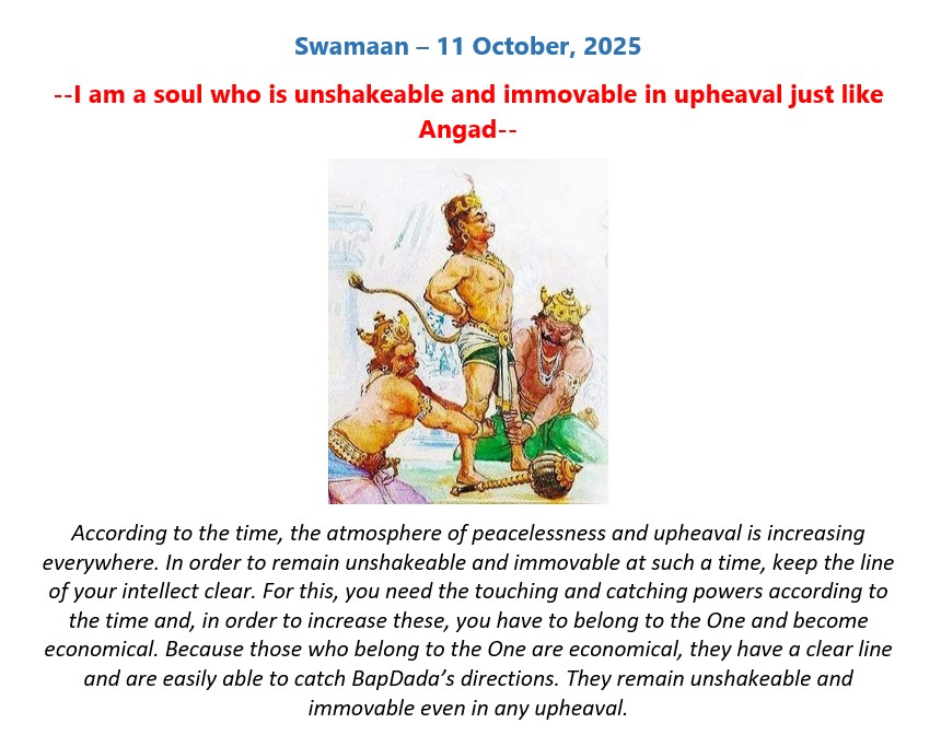 English Murli - 11.10.25 01. English Murli - Htm 02. English Murli - Pdf 03. English - GYDS Murli -Pdf 04. English Murli - Mp3 07. English Murli - Ess - SMS 25. Today Calendar 27. Swaman - Jpg Old Date - 10.10.25 Back Top