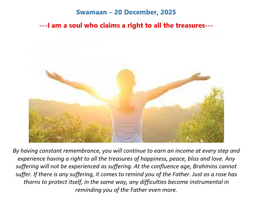 English Murli - 20.12.25 01. English Murli - Htm 02. English Murli - Pdf 04. English Murli - Mp3 05. Highlighted Murli - Pdf 07. English Murli - Ess - SMS 25. Today Calendar 27. Swaman - Jpg Old Date - 19.12.25 Back Top